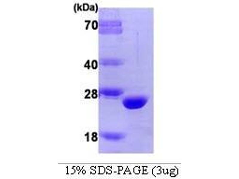 Catechol-O-methyltrasferase (COMT) is an enzyme that catalyses the transfer of the methyl group of S-adenosylmethionine (SAM) into catechol substrates such as levodopa, dopamine, epinephrine, and norepinephirine in the presence of Mg2+. COMT appears to be located in the postsynaptic neuron and plays roles in the metabolism of catechol estrogens and the inactivation of catecholamine neurotransmitters though enzymatic degradation. COMT inhibitors prevent levodopa degradation, increase its availability and are used in the treatment of patients with Parkinson's disease. Recombinant human COMT protein was expressed in E. coli and purified by using conventional chromatography techniques. Alternative Names: Catechol-O-methyltransferase protein, COMT, Catechol-O-methyltransferase protein