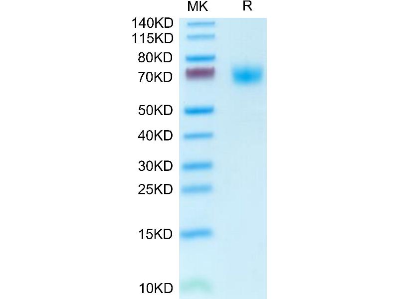 The purity of the protein is greater than 95 % as determined by SDS-PAGE and Coomassie blue staining.
