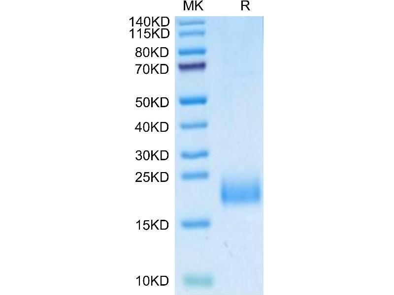 The purity of the protein is greater than 85 % as determined by SDS-PAGE and Coomassie blue staining.