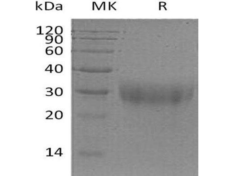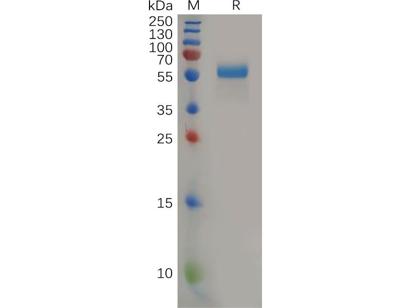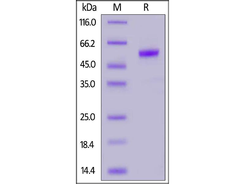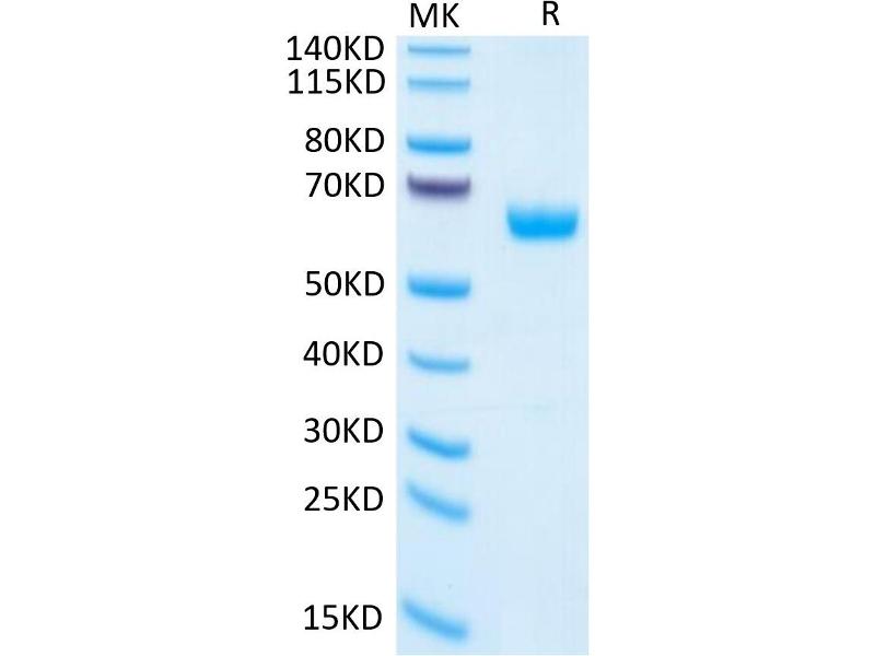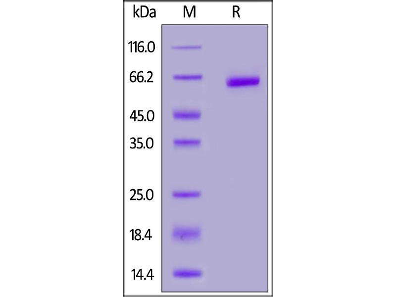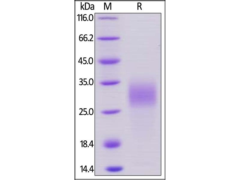 The purity of the protein is greater than 95 % as determined by SDS-PAGE and Coomassie blue staining.