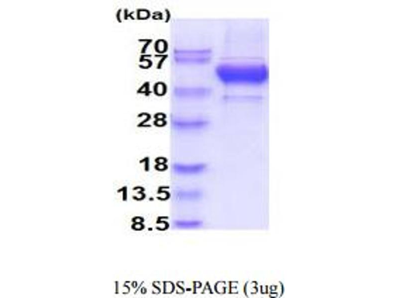 The purity of the protein is greater than 95 % as determined by SDS-PAGE and Coomassie blue staining.