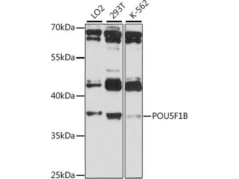 : "The POU5F1P1 pseudogene encodes a putative protein similar to POU5F1 isoform 1." in: Oncology reports, Vol. 20, Issue 5, pp. 1029-33, (2008) (PubMed).Aliase für POU5F1B Antikörper