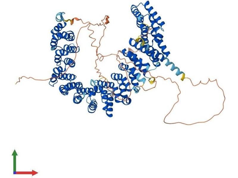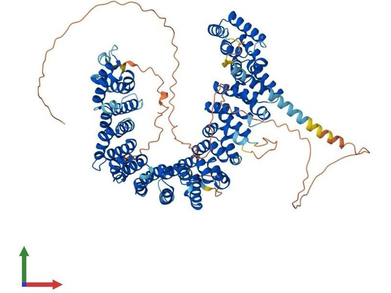 The protein encoded by this gene is a HEAT-like repeat-containing protein. The HEAT repeat is a tandemly repeated, 37-47 amino acid long module occurring in a number of cytoplasmic proteins. Arrays of HEAT repeats form a rod-like helical structure and appear to function as protein-protein interaction surfaces. The repeat-containing region of this protein has some similarity to the constant regulatory domain of the protein phosphatase 2A PR65/A subunit. The function of this particular gene product has not been determined. Alternative splicing has been observed for this gene and two transcript variants encoding distinct isoforms have been identified. [provided by RefSeq, Jul 2008].