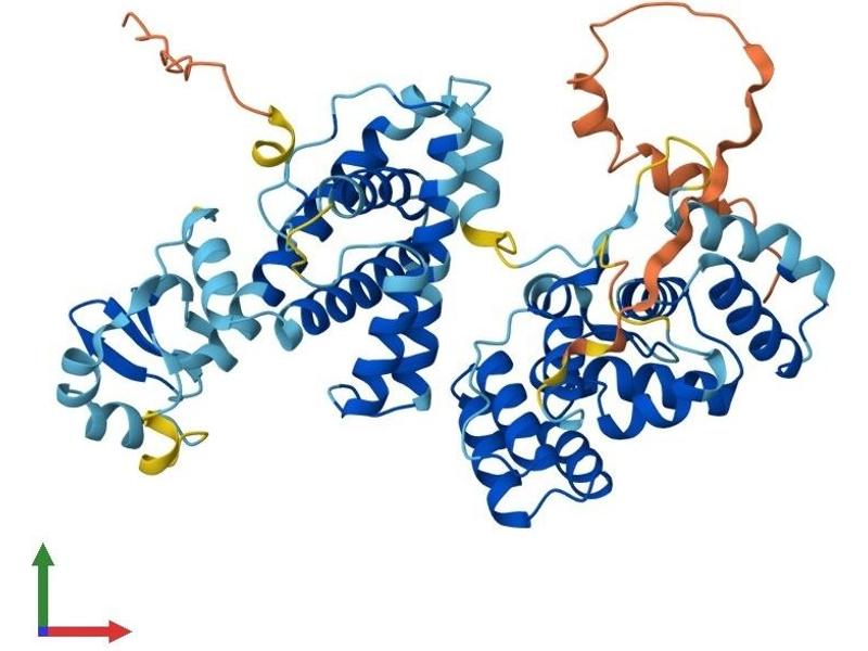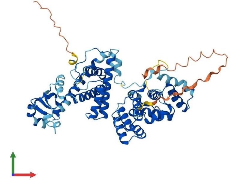 The replication of DNA in eukaryotic cells is carried out by a complex chromosomal replication apparatus, in which DNA polymerase alpha and primase are two key enzymatic components. Primase, which is a heterodimer of a small subunit and a large subunit, synthesizes small RNA primers for the Okazaki fragments made during discontinuous DNA replication. The protein encoded by this gene is the large, 58 kDa primase subunit. [provided by RefSeq, Jul 2008].