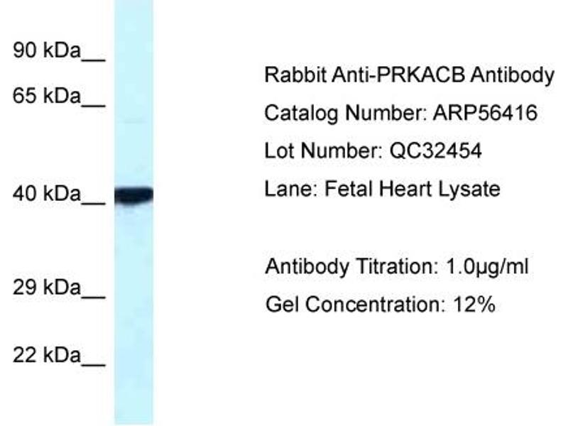 PRKACB Reaktivität: Human, Ratte, Maus, Rind (Kuh), Meerschweinchen, Pferd, Kaninchen, Hund, Schaf, Zebrafisch (Danio rerio) WB Wirt: Kaninchen Polyclonal unconjugated