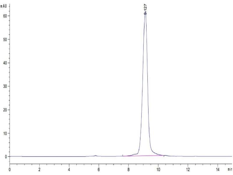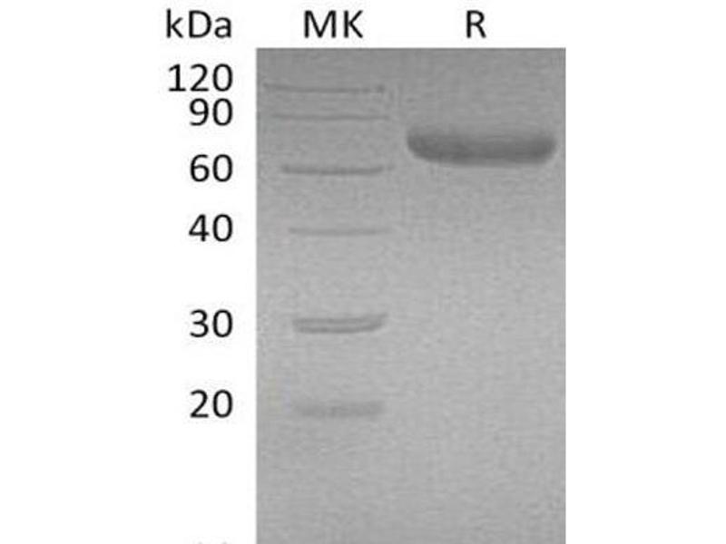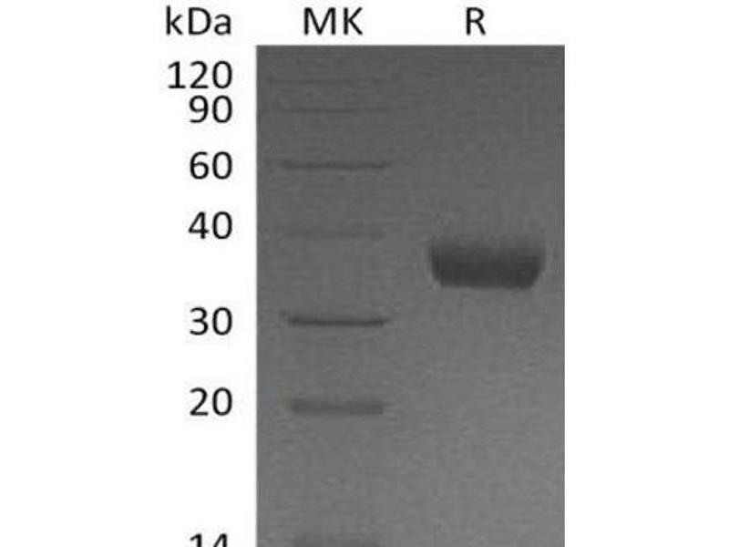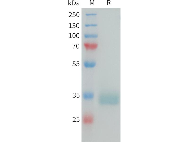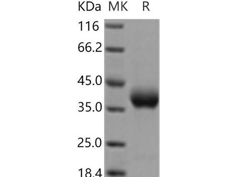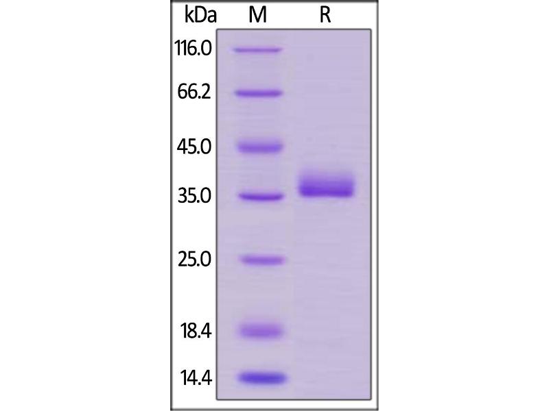 The purity of the protein is greater than 95 % as determined by SDS-PAGE and Coomassie blue staining.