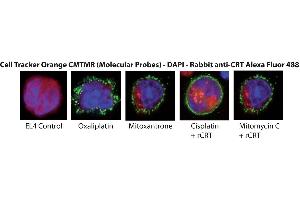 Calreticulin is involved in regulation of intracellular Ca2+ homoeostasis and ER Ca2+ capacity. It constitutes together with calnexin and ERp57 the 'calreticulin/calnexin cycle' that is responsible for folding and quality control of newly synthesized glycoproteins. Calreticulin has been implicated to play a role in many biological systems, including functions inside and outside the ER, indicating that the protein is a multi-process molecule. Recently, Calreticulin was shown to enhance the merger of macrophages and tumor cells, increasing phagocytosis.