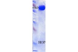 - Hop (HSP70/HSP90 Organizing Protein), or Stress-induced Phosphoprotein 1 (STI1) as it is also known, is a 60 kDa protein that belongs to the large group of co-chaperones which regulate and assist the major chaperones. It is located in diverse cellular regions and can move between the cytoplasm and the nucleus. It functions to reversibly link together the protein chaperones HSP70 and HSP90. HOP contains three tetratricopeptide repeat (TPR) domains, TPR1, TPR2a and TPR2b. HSP70 binding has been localized to TRP1 and sp90 binding have been localized to TPR2a (1). It has also been found to modulate the chaperone activities of the linked proteins and possible interacts with other chaperones and proteins. It has also been found to participate in other complexes besides the HSP70/HSP90 one (2). HOP is closely related to human 63 kDa protein that is sensitive to simian virus SV40 transformation, and is related to the yeast heat-shock- responsive STI1 gene product (3, 4).