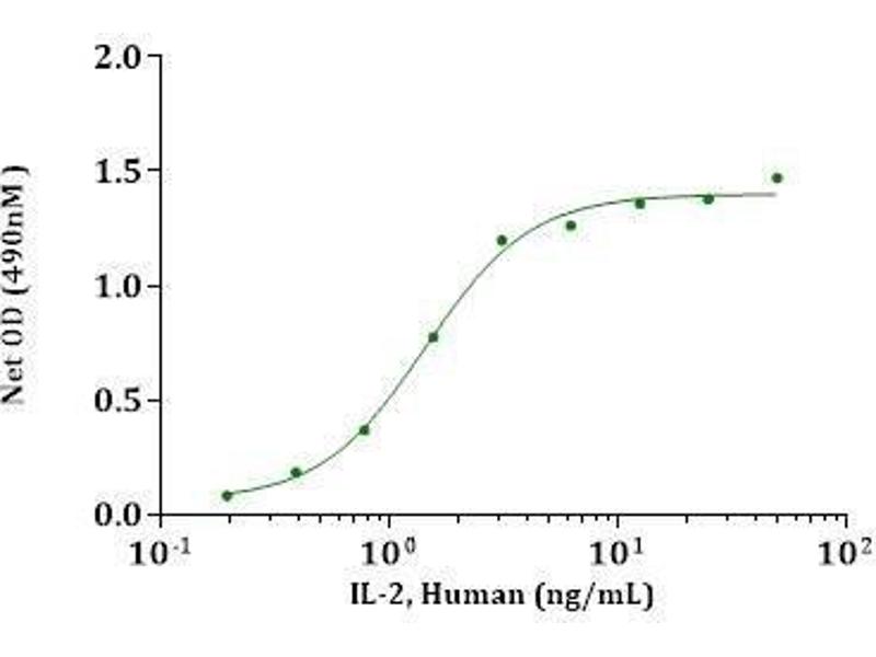 Interleukin-2 (IL-2) is a Oglycosylated, four alpha-helix bundle cytokine that has potent stimulatory activity for antigen-activated T cells. It is expressed by CD4+ and CD8+ T cells, gamma delta T cells, B cells, dendritic cells, and eosinophils. IL-2/IL-2R signaling is required for T-cell proliferation and other fundamental functions which are essential for the immune response. IL-2 stimulates growth and differentiation of B-cells, NK cells, lymphokine activated killer cells, monocytes, macrophages and oligodendrocytes.
