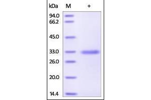 - This protein carries a polyhistidine tag at the C-terminus. The protein has a calculated MW of 24.8 kDa. The protein migrates as 30-33 kDa under reducing (R) condition (SDS-PAGE).