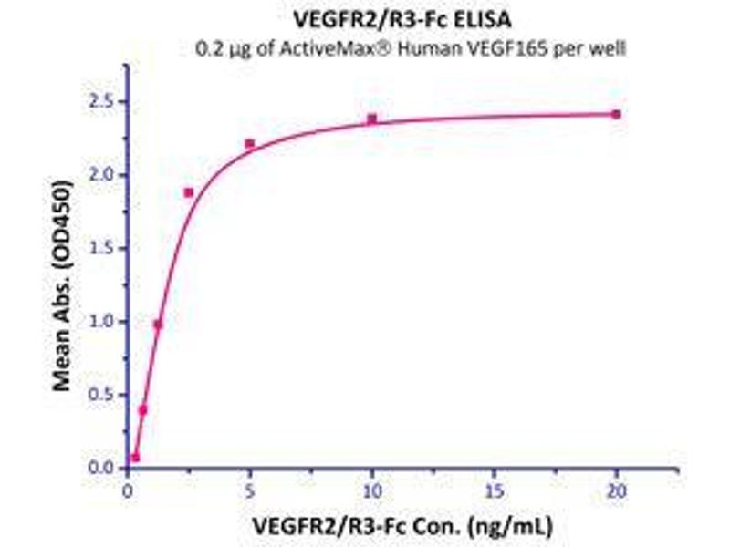 - VEGF165 is the most abundant splice variant of VEGF-A. VEGF165 is produced by a number of cells including endothelial cells, macrophages and T cells. VEGF165 is involved in angiogenesis, vascular endothelial cell survival, growth, migration and vascular permeability. VEGF gene expression is induced by hypoxia, inflammatory cytokines and oncogenes. VEGF165 binds to heparan sulfate and is retained on the cell surface and in the extracellular matrix. VEGF165 binds to the receptor tyrosine kinases, VEGFR1 and VEGFR2. VEGF165 is the only splice variant that binds to co-receptors NRP-1 and NRP-2 that function to enhance VEGFR2 signaling. Binding of VEGF165 to VEGFR1 and VEGFR2 leads to activation of the PI3K/AKT, p38 MAPK, FAK and paxillin. VEGF plays a key role in tumor angiogenesis in many cancers.