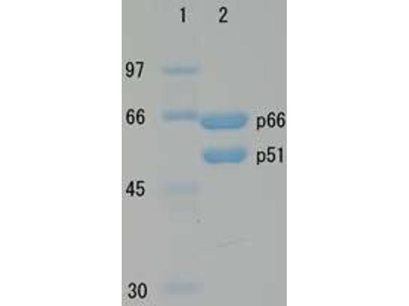 - HIV-1 reverse transcriptase is an RNA-dependent DNA polymerase derived from HIV-1 (AIDS virus), subtype B origin. It also has RNaseH activity and is an enzyme indispensable for reproduction of AIDS virus. This protein is uniquely over-expressed as a recombinant protein in E. coli by a patented method and highly purified. It is composed of two subunits whose molecular weights are 66 kD and 51 kD, same as the those of the enzyme purified from AIDS virus particles.