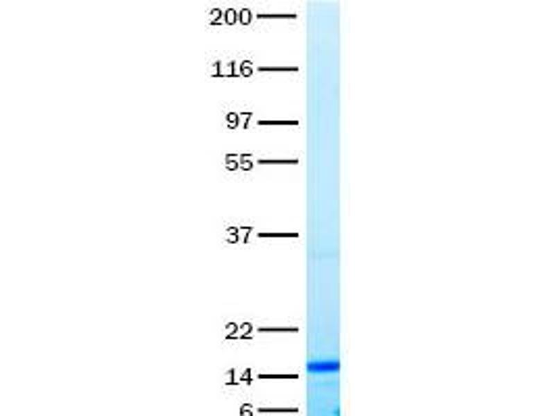 - Recombinant human KITLG / SCF (transcript variant b) protein expressed in E. coli.