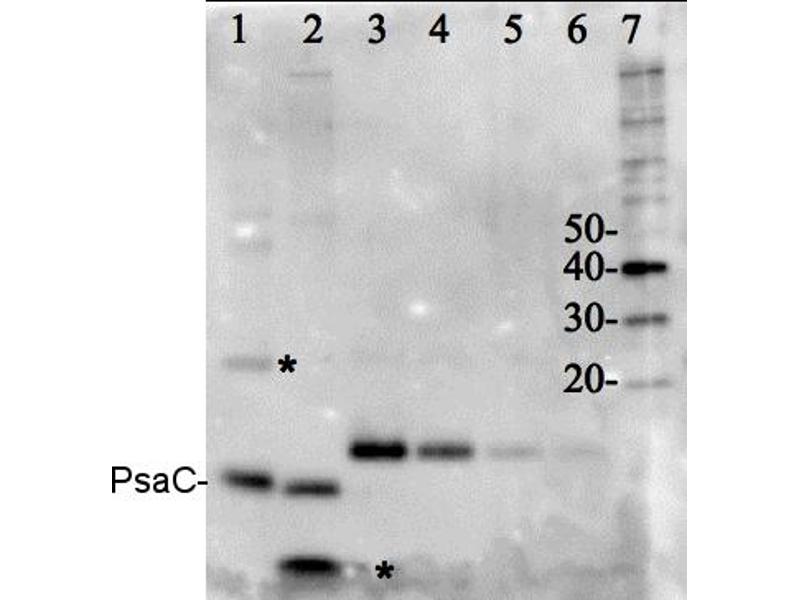 - Standard curve: 3 loads are recommended (0.5, 2 and 4i1/4l).For most applications a sample load of 0.2i1/4g of chlorophyll will give a PsaC signal in this range.Positive control: a 2i1/4l load per well is optimal for most chemiluminescent detection systems. This standard is ready-to-load and does not require any additions or heating.Please note that this product contains 10 % glycerol and might appear as liquid but is provided lyophilized. Allow the product several minutes to solubilize after adding water. Mix thoroughly but gently Take extra care to mix thoroughly before each use, as the proteins tend to settle with the more dense layer after freezing.