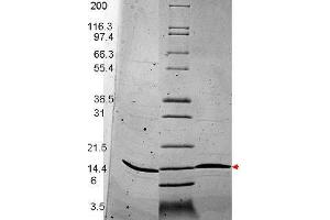 - Purity was determined to be greater than 97% as determined by analysis by RP-HPLC and by reducing and non-reducing SDS-PAGE against a known standard. Endotoxin level as determined by kinetic LAL analysis: 0.05 EUs/μg protein.