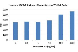 Application Note: Monocyte Chemotactic Protein-2 Recombinant Protein has been tested by SDS-PAGE and biological activity and is suitable as a control for polyclonal or monoclonal anti-Monocyte Chemotactic Protein-2 in immunological assays.