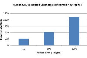 Application Note: Gro-beta Recombinant Protein has been tested by biological activity and is suitable as a control for polyclonal or monoclonal anti-Gro-beta in immunological assays.