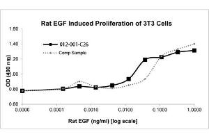 Background: Epidermal Growth Factor (EGF) is a growth factor that stimulates the proliferation of epithelial and epidermal cells. EGF family members are characterized by three intramolecular disulfide bonds and can bind to four different receptor tyrosine kinases known as EGFR/ErbB1, ErbB2, ErbB3, and ErbB4. Recombinant rat EGF is a non-glycosylated protein, containing 54 amino acids, with a molecular weight of 6.3 kDa.