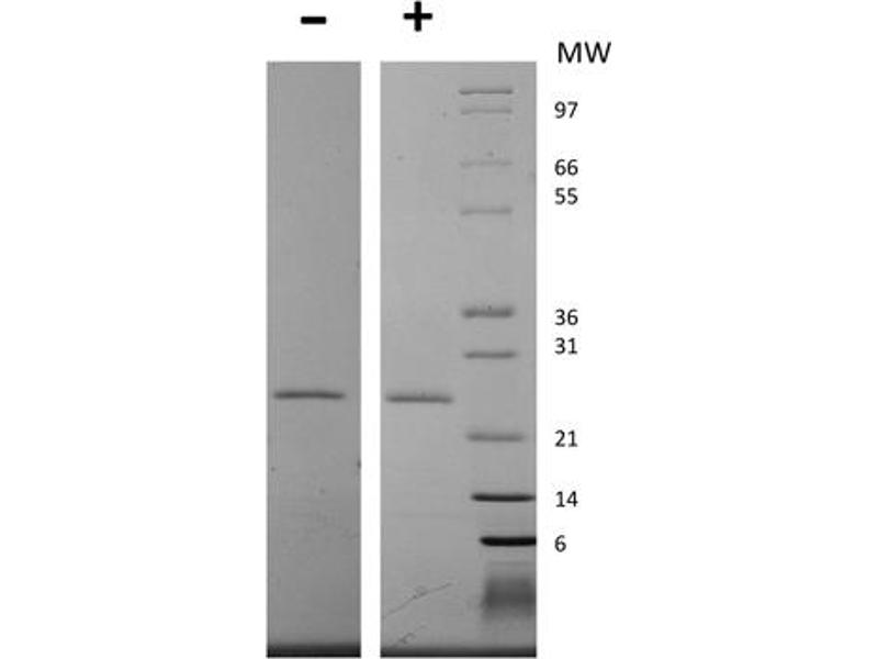 Application Note: Epstein-Barr Virus Induced Gene 3 Recombinant Protein has been tested by SDS-PAGE and is suitable as a control for polyclonal or monoclonal anti-Epstein-Barr Virus Induced Gene 3 in immunological assays. The product is lyophilized from a sterile filtered aqueous solution of 0.1 % TFA and 0.5 % mannitol.