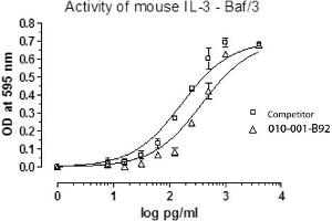 Application Note: Mouse Interleukin-3 Recombinant Protein has been tested by biological activity and is suitable as a control for polyclonal or monoclonal anti-Mouse Interleukin-3 in immunological assays.