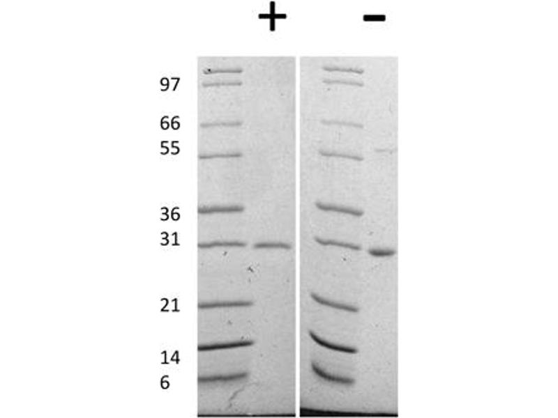 - Lyophilized in 10 mM sodium phosphate, 50 mM sodium chloride, pH 7.5.