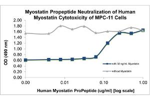 - The activity is determined by its ability to inhibit 50 ng/mL of Myostatin on MPC-11 cells and is typically 0.01-0.04 μg/mL.