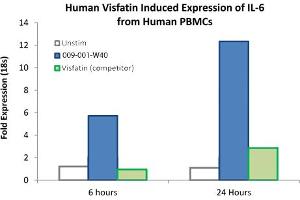 Background: Visfatin is an adipokine produced by visceral adipose tissue. Other adipokines include leptin, adiponectin, resistin, chemerin, omentin and vaspin. Visfatin has been shown to act as a pro-inflammatory factor for PBMCs and may mimic the effects of insulin on adipocytes, monocytes and hepatocytes. Recombinant human Visfatin is a non-glycosylated protein, containing 466 amino acids, with a molecular weight of 52.6 kDa.