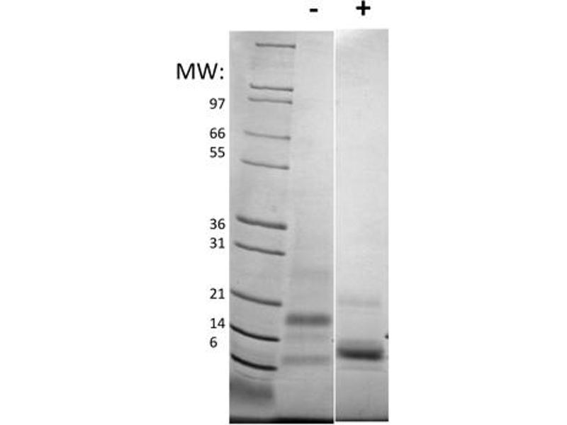 Application Note: RELM beta Recombinant Protein has been tested by SDDS-PAGE and is suitable as a control for polyclonal or monoclonal anti-RELM beta in immunological assays.