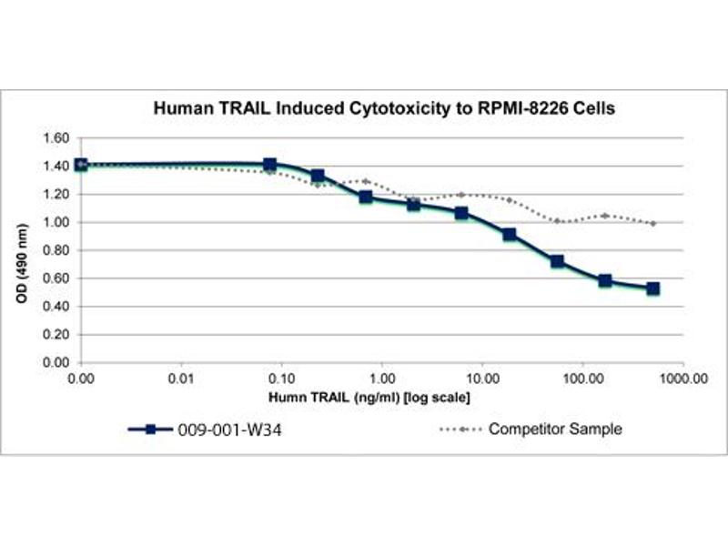 - The activity is determined by the ability to induce apoptotic cell death in TRAIL-sensitive RPMI-8226 cells and is typically 10-15 ng/mL.