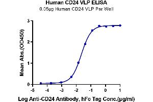 - Immobilized Human CD24 VLP at 0.5μg/ml (100μl/Well) on the plate. Dose response curve for Anti-CD24 Antibody, hFc Tag with the EC50 of 22.1ng/ml determined by ELISA.