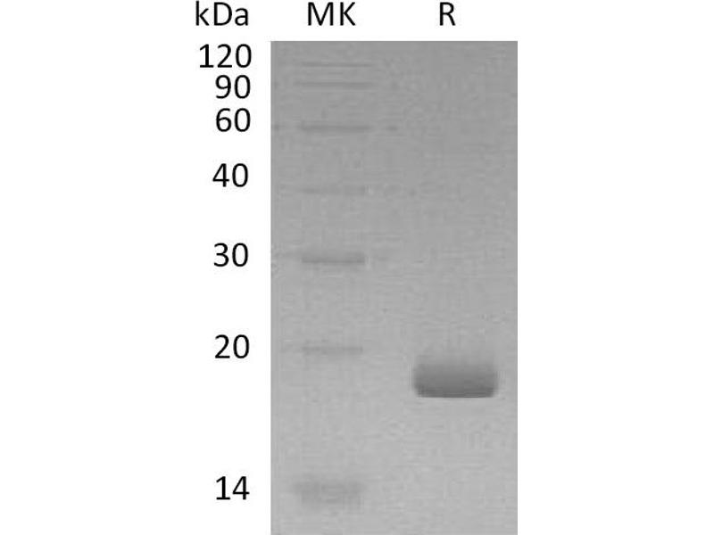 Interleukin-28B, also known as Cytokine Zcyto22, Interferon lambda-3, Interferon lambda-4, IFNL3, IFNL4, ZCYTO22 and IL28B, is a secreted cytokine which belongs to the IL-28/IL-29 family. IL-28 has also been shown to play a role in the adaptive immune response. IL28B has immunomodulatory activity and up-regulates MHC class I antigen expression. IL28B displays potent antiviral activity and antitumor activity. In addition, IL28B is a ligand for the heterodimeric class II cytokine receptor composed of IL10RB and IL28RA. The ligand/receptor complex seems to signal through the Jak-STAT pathway. -