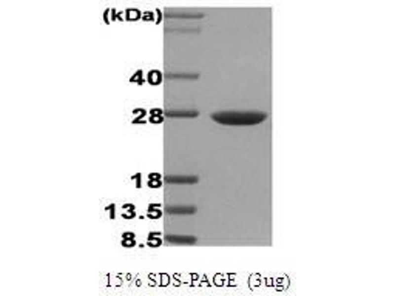 Hsp27 (also known as the Estrogen-Regulated 24K protein, and hsp 28) is a member of the mammalian small heat shock protein family. Hsp27 is expressed constitutively in many tissues and its expression is increased to high levels after various types of stress including elevated temperatures, toxic metals, drugs and oxidants. Also, Hsp27 is phosphorylated in vivo on three phosphorylation sites (Ser15, Ser78 and Ser82) by protein kinases including MAPKAP kinase 2 and the stress-activated protein kinase SAPK2 (p38). Recombinant human Hsp27 was overexpressed in E. coli and purified by conventional chromatography.