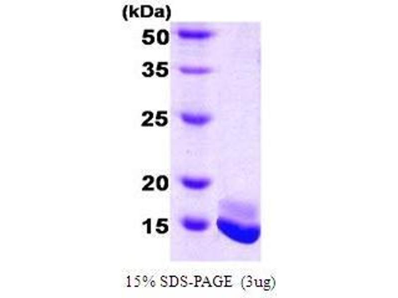 Calmodulin has been known to act as an intracellular calcium sensor protein. When the intracellular Ca2+ concentration increases, calmodulin can bind up to four Ca2+, changing its conformation and regulating cellular functions such as activation or inhibition of a large number of enzymes, ion channels, and receptors. Recombinant human Calmodulin was expressed in E. coli and purified by conventional chromatography techniques.