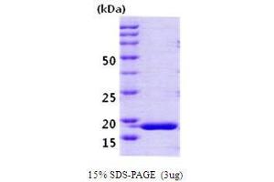 Cyclophilin H (also known as peptidylpropyl isomerase H, PPIH) is a member of peptidyl-propyl cis-trans isomerase (PPIase) family, which catalyzes the cis-trans isomerization of proline imidic peptide bonds in oligopeptides and accelerates the folding of proteins. The cyclophilin H is a specific component of the human U4/U6 small nuclear ribonucleoprotein particle involved in the nuclear splicing of pre-mRNA. It stably associates with the U4/U6-60kD and -90kD proteins, the human orthologues of the Saccharomyces cerevisiae Prp4 and Prp3 splicing factors. Recombinant human cyclophilin H was expressed in E. coli and purified by conventional chromatography techniques.