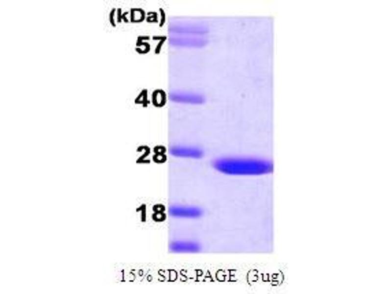 Biliverdin reductase B (BLVRB) is an enzyme that converts biliverdin to bilirubin, converting a double-bond between the second and third pyrrole ring into a single-bond. BLVRB is found that major erythrocytic heme catabolic pathway in humans and most mammalian species. Biliverdin reductase is abundantly expressed in kidney, spleen, liver and brain as well as at lower levels in the thymus and minimal levels being detected in testis. Recombinant BLVRB protein was expressed in E. coli and purified by using conventional chromatography techniques.