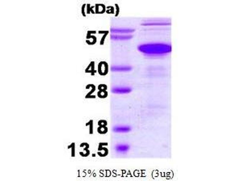 Ataxin 3 is also known as Machado-Joseph disease protein 1. Machado-Joseph disease is one of several hereditary autosomal dominant neurodegenerative disorders. This protein contains trinucleotide CAG repeats in the coding region, and the expansion of these repeats from the normal 13-36 to 68-79 is the cause of Machado-Joseph disease. Ataxin 3 interacts with the major histone acetyltransferases cAMP-response-element binding protein (CREB)-binding protein, p300, and p300/CREB-binding protein-associated factor and inhibits transcription by these coactivators. Also, ataxin-3 is a proteasome-associated factor that mediates the degradation of ubiquitinated proteins. Recombinant human Ataxin-3 was expressed in E. coli and purified by using conventional chromatography.