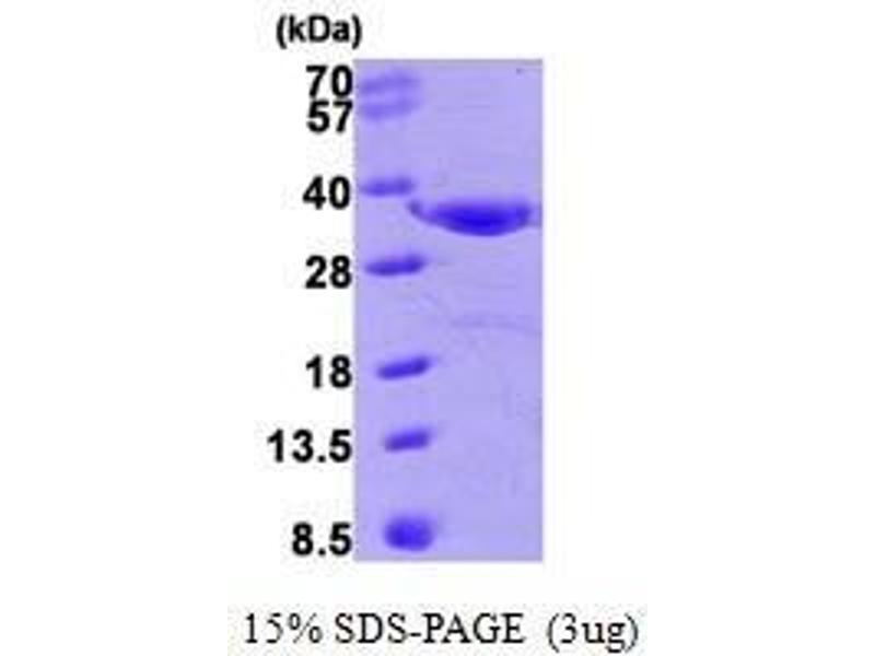 ANXA4 belongs to the annexin family of calcium-dependent phospholipid binding proteins. Although their functions are still not clearly defined, several members of the annexin family have been implicated in membrane-related events along exocytotic and endocytotic pathways. Isolated from human placenta, this protein has possible interactions with ATP, and has in vitro anticoagulant activity and also inhibits phospholipase A2 activity. ANXA4 is almost exclusively expressed in epithelial cells. Recombinant ANXA4 protein was expressed in E. coli and purified by using conventional chromatography techniques.