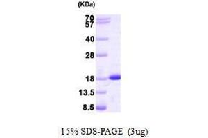 NME2, also known as NM23B, is a heterodimeric protein functioning as a nucleoside diphosphate (NDP) kinase. NME1 and NME2 comprise the 152 amino acid A and B polypeptide chains of the NM23 enzyme, respectively. NME2 is identical to the beta subunit of human erythrocyte NDP kinase. NDP kinases are involved in the synthesis of nucleoside triphosphates, and NM23 may act in the regulation of signal transduction by complexing with G proteins, causing activation/inactivation of developmental pathways. Recombinant human NME2 protein was expressed in E. coli and purified by using conventional chromatography techniques.