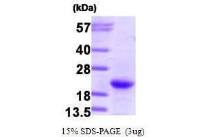 Neuroblastoma RAS viral (v-ras) oncogene homolog, also known as NRAS, is a member of the RAS gene family. NRAS is an oncogene encoding a membrane protein that shuttles between the Golgi apparatus and the plasma membrane. The encoded protein, which has intrinsic GTPase activity, is activated to a GTP-bound form by a GTPase activating protein and inactivated to a GDP-bound form by a guanine nucleotide-exchange factor. Recombinant human NRAS was expressed in E. coli and purified by using conventional chromatography techniques.