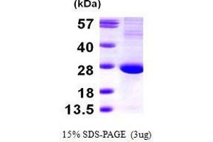 Translin, also known as TSN, is a DNA and RNA binding protein which specifically recognizes conserved target sequences at the breakpoint junction of chromosomal translocations. Translin forms a ring-shaped structure, which is responsible for DNA binding, and also contains a leucine zipper motif, which is thought to enable translin to form dimers. Translin exports specific mRNAs out of the nucleus, supported by its localization in both the nuclei and cytoplasm of neurons, and regulates their translation. Recombinant human Translin protein, was expressed in E. coli and purified by using conventional chromatography techniques.