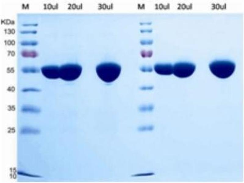 > 95 % as determined by SDS-PAGE. > 90 % as determined by SEC-MALS.