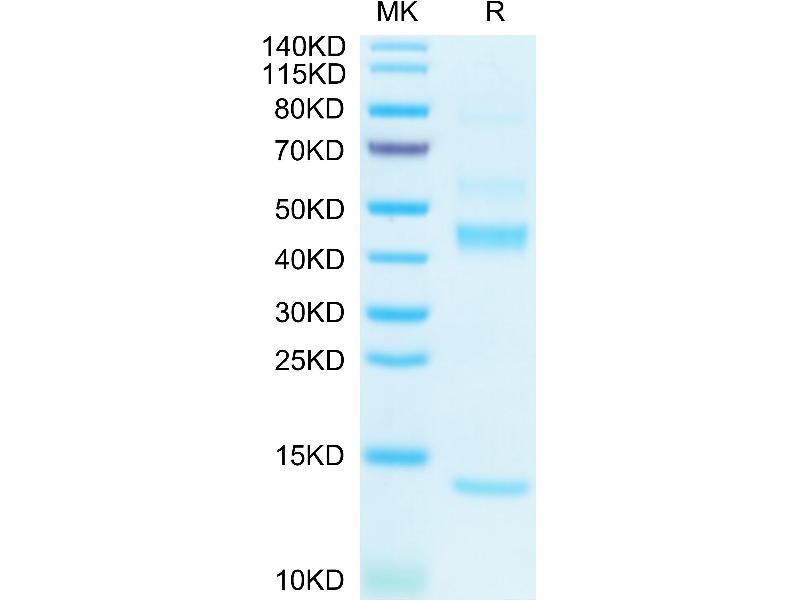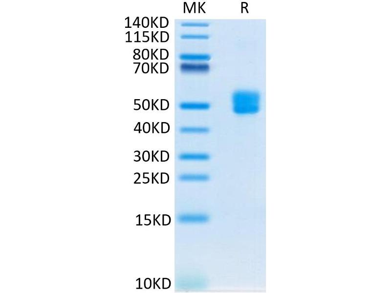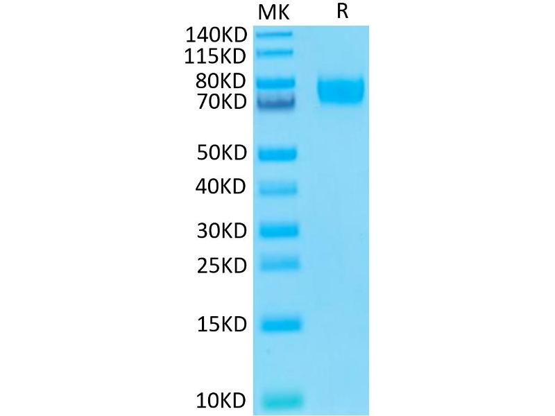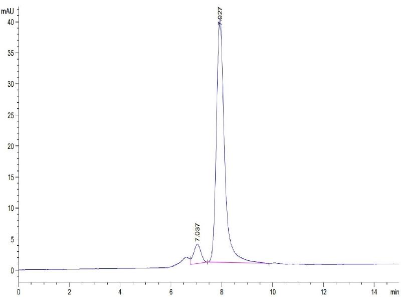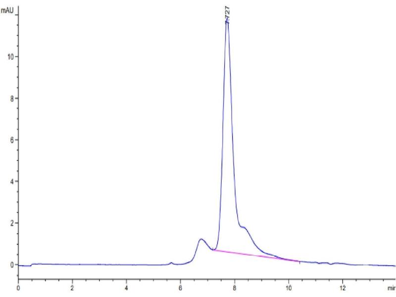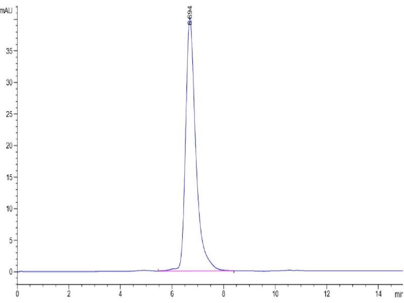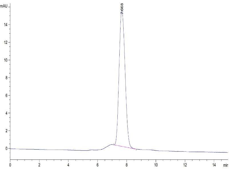 The purity of the protein is greater than 95 % as determined by SDS-PAGE and Coomassie blue staining.