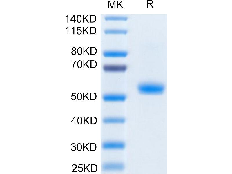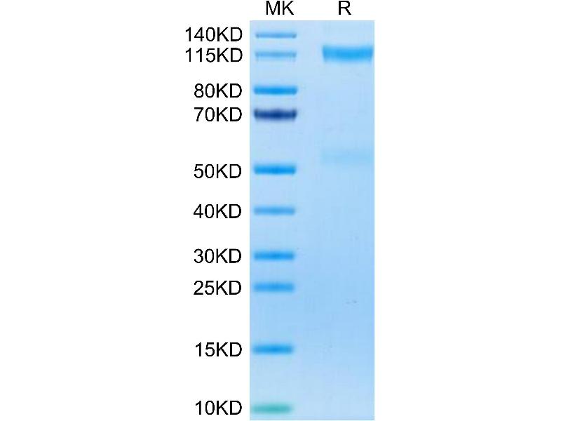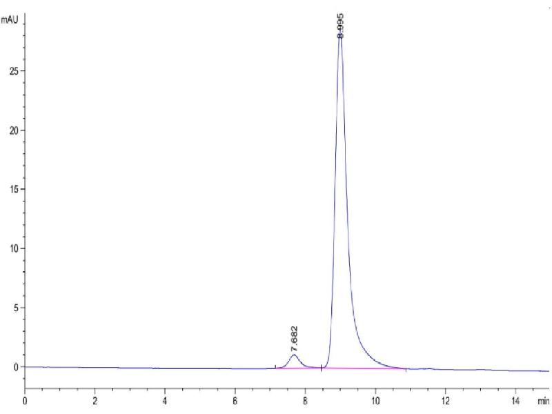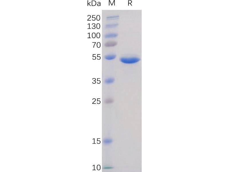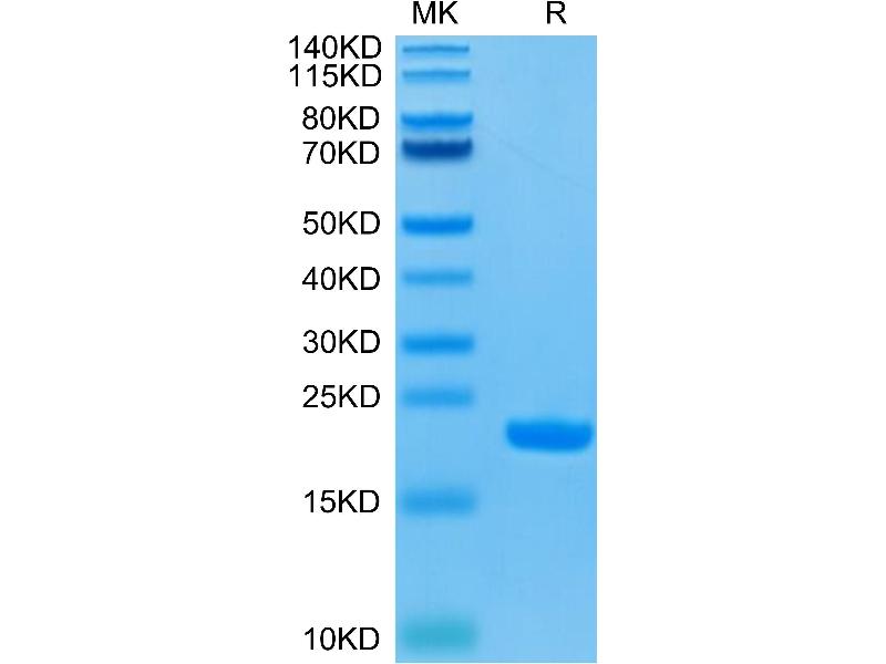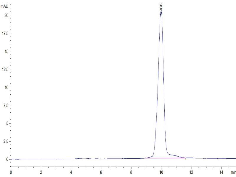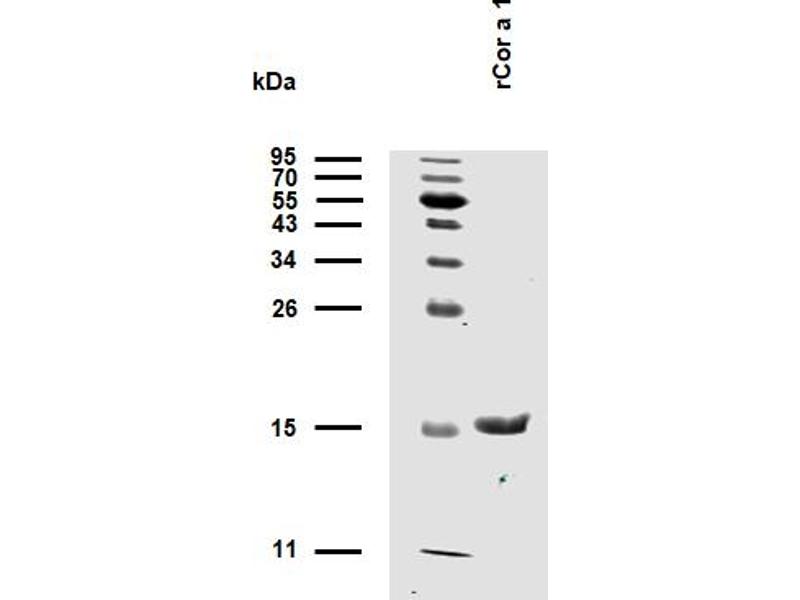 The purity of the protein is greater than 95 % as determined by SDS-PAGE and Coomassie blue staining.