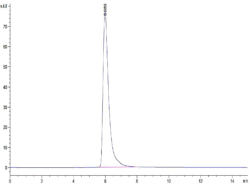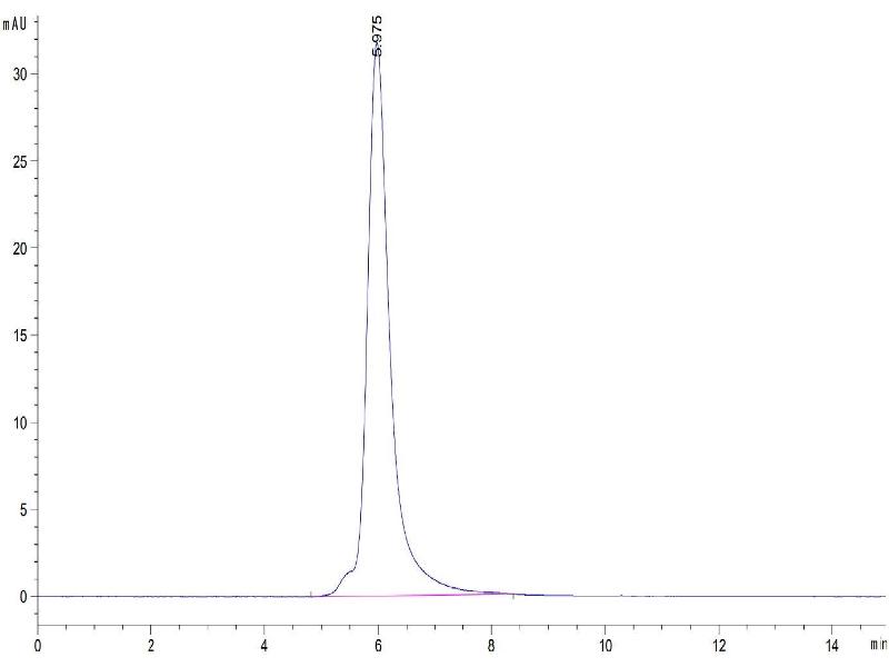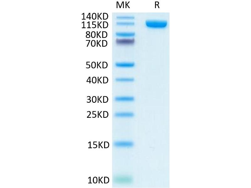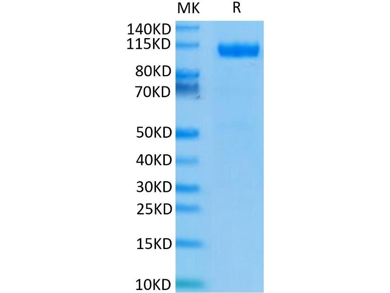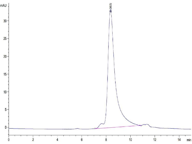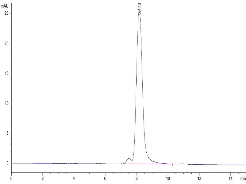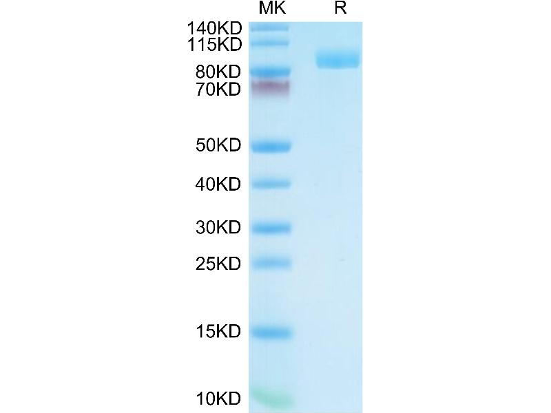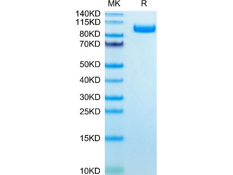 The purity of the protein is greater than 90 % as determined by SDS-PAGE and Coomassie blue staining.