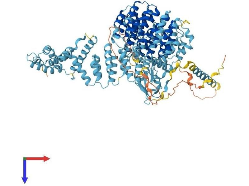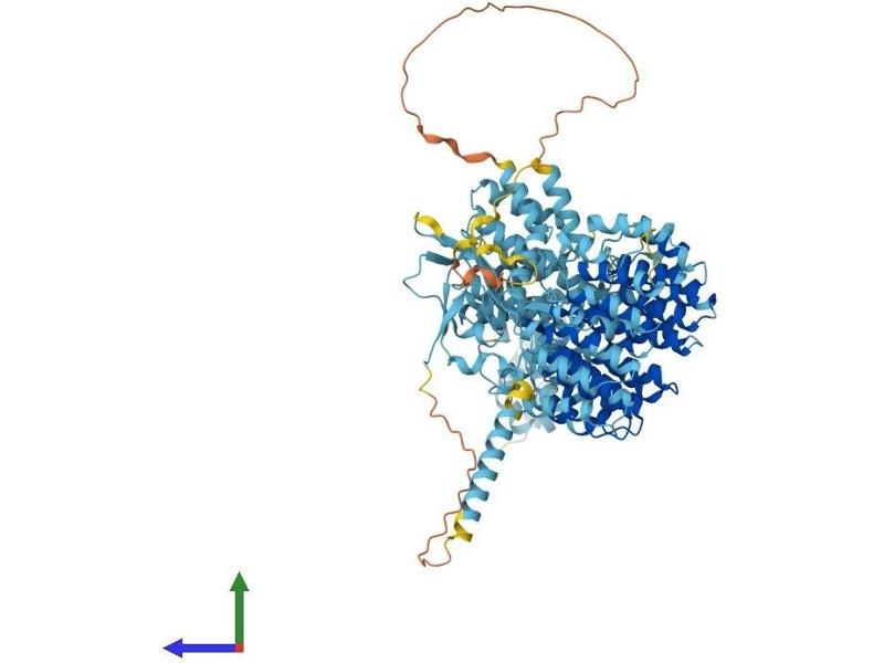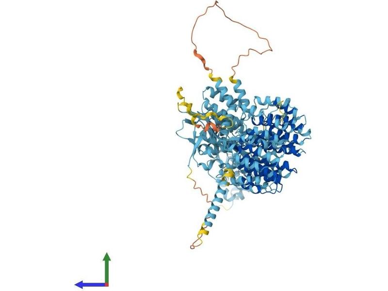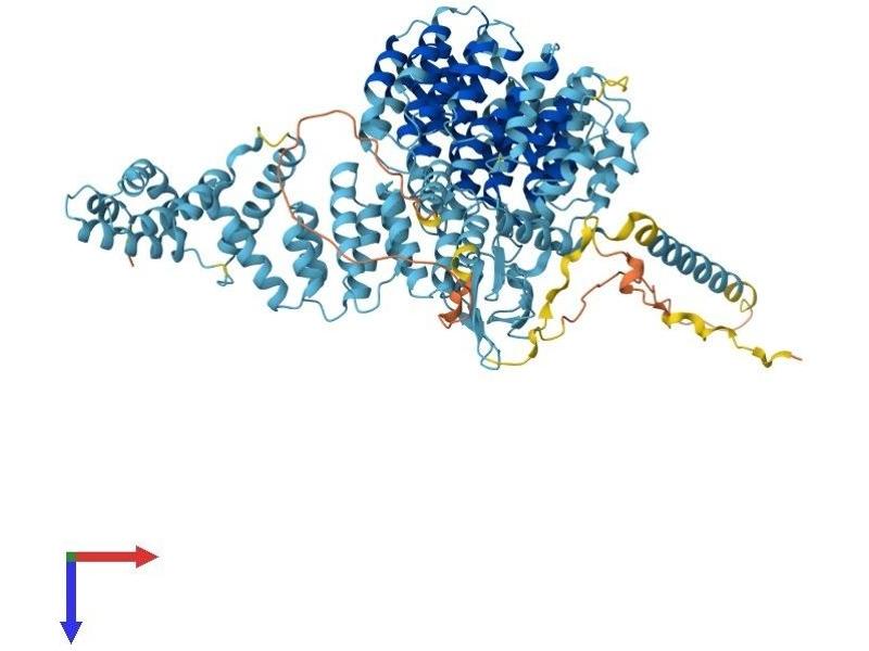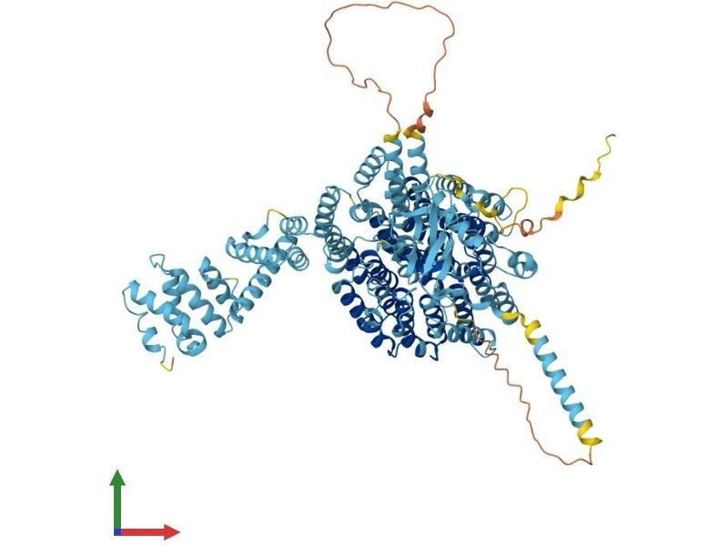 The 26S proteasome is a multicatalytic proteinase complex with a highly ordered structure composed of 2 complexes, a 20S core and a 19S regulator. The 20S core is composed of 4 rings of 28 non-identical subunits\; 2 rings are composed of 7 alpha subunits and 2 rings are composed of 7 beta subunits. The 19S regulator is composed of a base, which contains 6 ATPase subunits and 2 non-ATPase subunits, and a lid, which contains up to 10 non-ATPase subunits. Proteasomes are distributed throughout eukaryotic cells at a high concentration and cleave peptides in an ATP/ubiquitin-dependent process in a non-lysosomal pathway. An essential function of a modified proteasome, the immunoproteasome, is the processing of class I MHC peptides. This gene encodes the largest non-ATPase subunit of the 19S regulator lid, which is responsible for substrate recognition and binding. Alternatively spliced transcript variants have been found for this gene.[provided by RefSeq, Jul 2010].