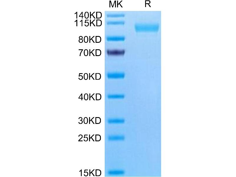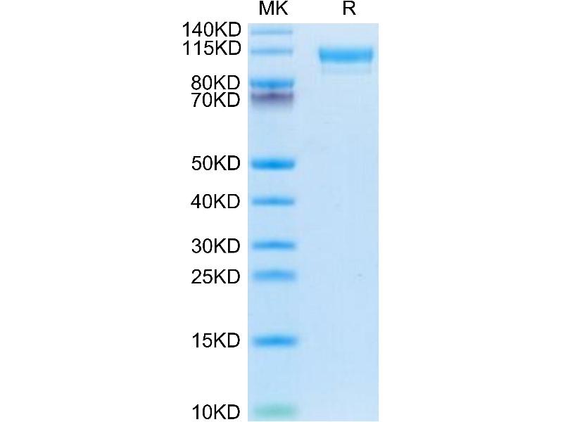 The purity of the protein is greater than 85 % as determined by SDS-PAGE and Coomassie blue staining.