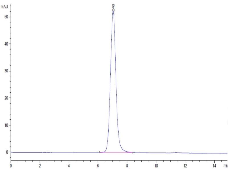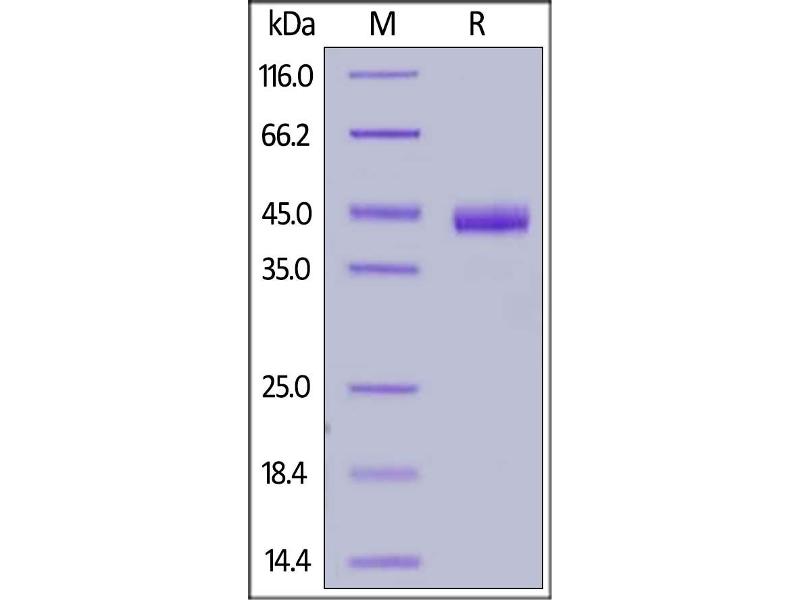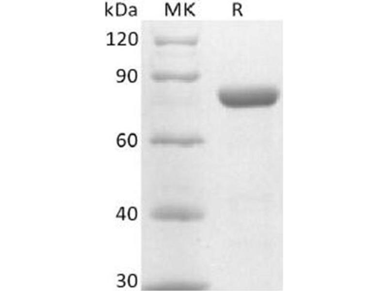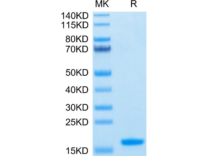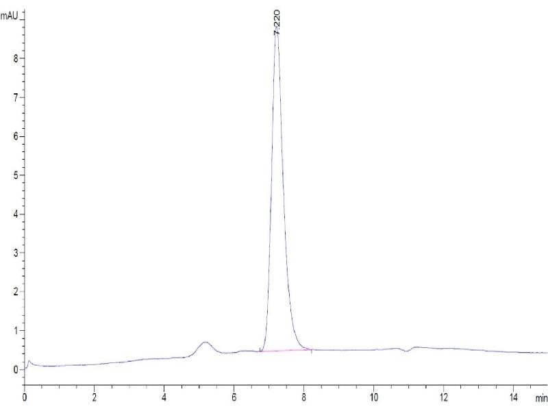 The purity of the protein is greater than 85 % as determined by SDS-PAGE and Coomassie blue staining.