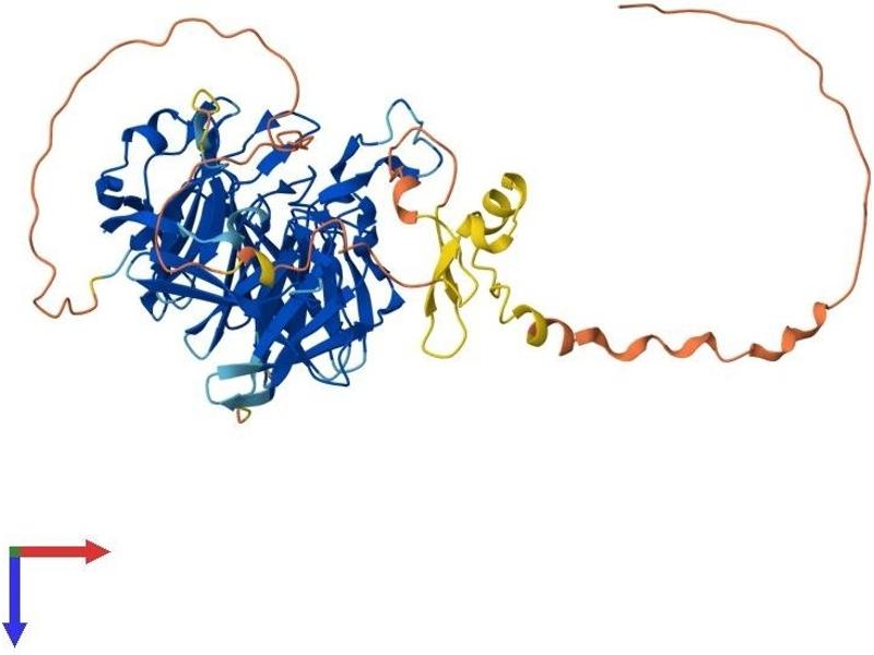 This gene encodes a protein that is involved in the initiation of V(D)J recombination during B and T cell development. This protein forms a complex with the product of the adjacent recombination activating gene 1, and this complex can form double-strand breaks by cleaving DNA at conserved recombination signal sequences. The recombination activating gene 1 component is thought to contain most of the catalytic activity, while the N-terminal of the recombination activating gene 2 component is thought to form a six-bladed propeller in the active core that serves as a binding scaffold for the tight association of the complex with DNA. A C-terminal plant homeodomain finger-like motif in this protein is necessary for interactions with chromatin components, specifically with histone H3 that is trimethylated at lysine 4. Mutations in this gene cause Omenn syndrome, a form of severe combined immunodeficiency associated with autoimmune-like symptoms. [provided by RefSeq, Jul 2008].