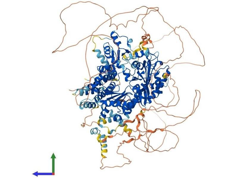 This gene encodes a protein with similarity to the S. cerevisiae mutagenesis protein Rev1. The Rev1 proteins contain a BRCT domain, which is important in protein-protein interactions. A suggested role for the human Rev1-like protein is as a scaffold that recruits DNA polymerases involved in translesion synthesis (TLS) of damaged DNA. Two alternatively spliced transcript variants that encode different proteins have been found. [provided by RefSeq, Jul 2008].