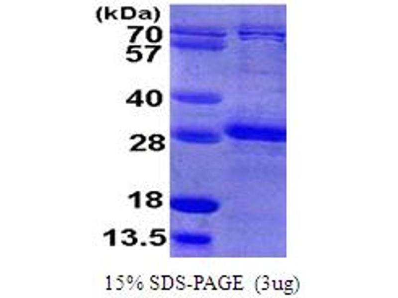 The purity of the protein is greater than 95 % as determined by SDS-PAGE and Coomassie blue staining.